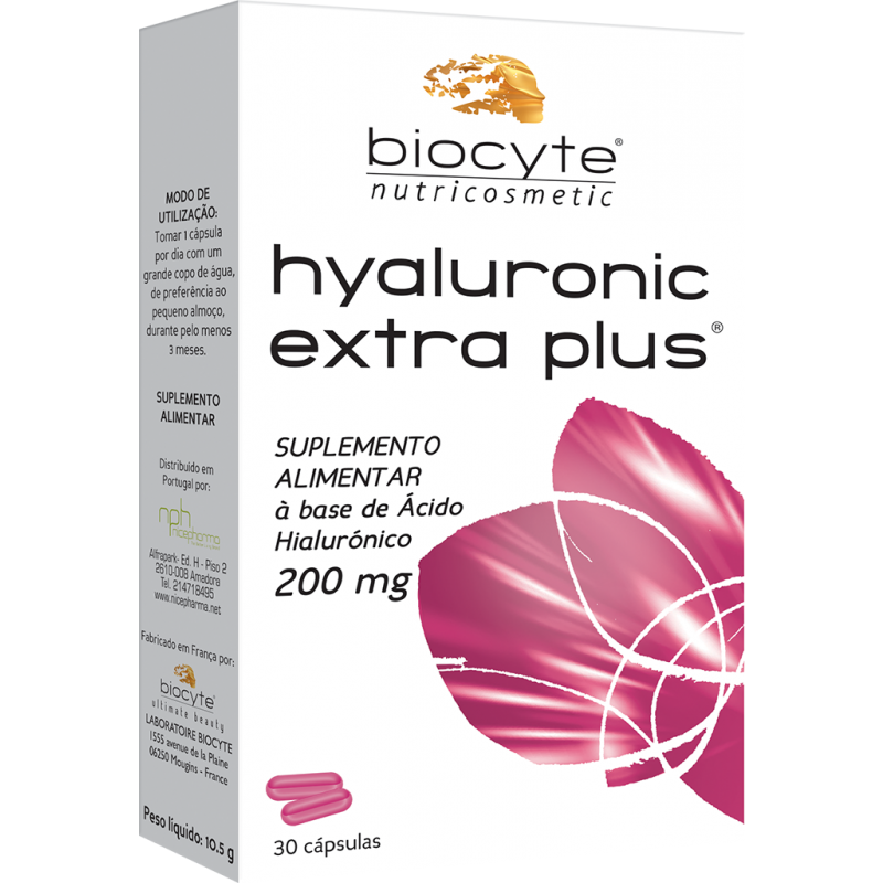 1º suplemento alimentar no mercado que fornece um espectro completo de ÁCIDOS HIALURÓNICOS com pesos moleculares diferentes. ÁCIDO HIALURÓNICO tem propriedades Hidrofílicas: Absorvem 1000 vezes mais do que o seu peso em água. E ainda suporta as fibras de colagénio e elastina